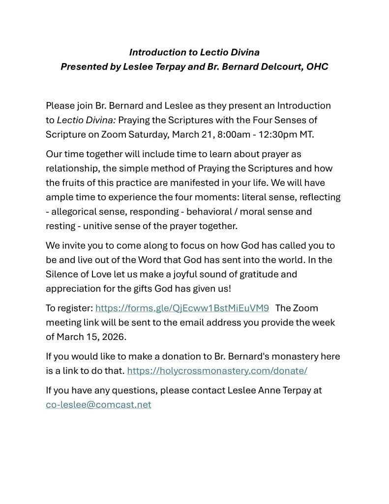 Introduction to Lectio Divina – on Zoom – March 21